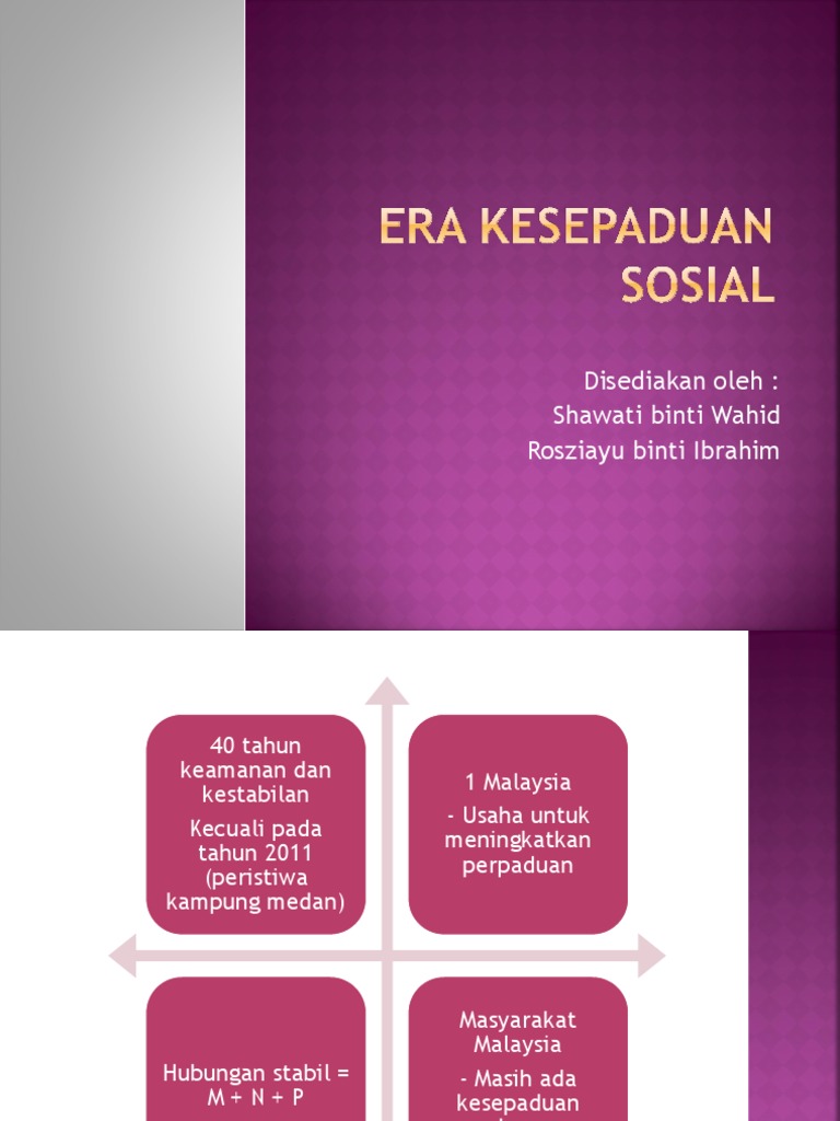 Huraikan usaha-usaha ke arah pembentukan kesepaduan sosial dalam masyarakat di malaysia. This is a text of a Distinguished Professor Lecture that argues that Malaysia dreams of a unity in diversity but it actually exists on cohesion in. Interested in flipbooks about ISU ISU KESEPADUAN SOSIAL DAN KEBUDAYAAN DI MALAYSIA.