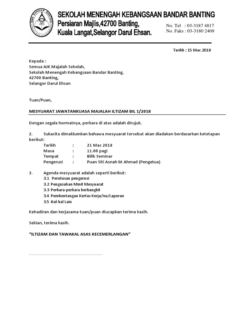 Contoh Surat Panggilan Mesyuarat Jk Majalah Pdf